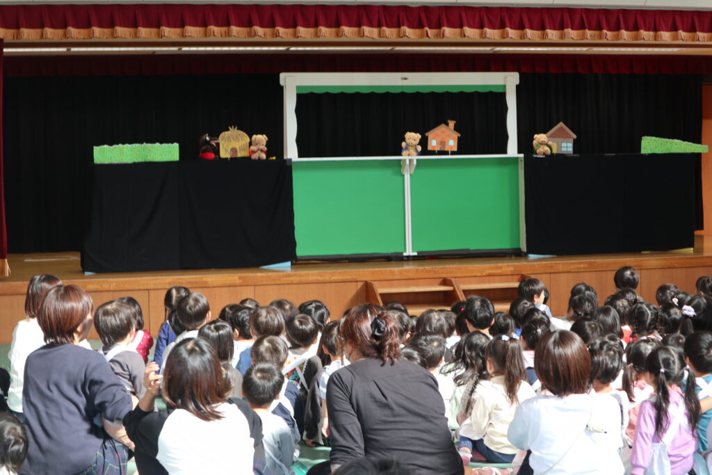 誕生会の後半には、「3びきの子ぶた」のお話を観ながら、「いたずらやいじわるはダメだよ」と、みんなで楽しく学びました。