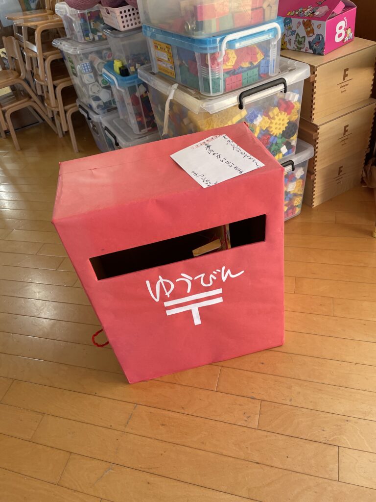 少しずつ順番に学んだ「ひらがな」は、日頃から、「ひらがな」を使って葉書を作りポストに入れると、次の日の朝にはロッカーに届く「郵便ごっこ」の取り組みの中でも、楽しみながら「ひらがな」を使ってどんどん表現できるようになりました。