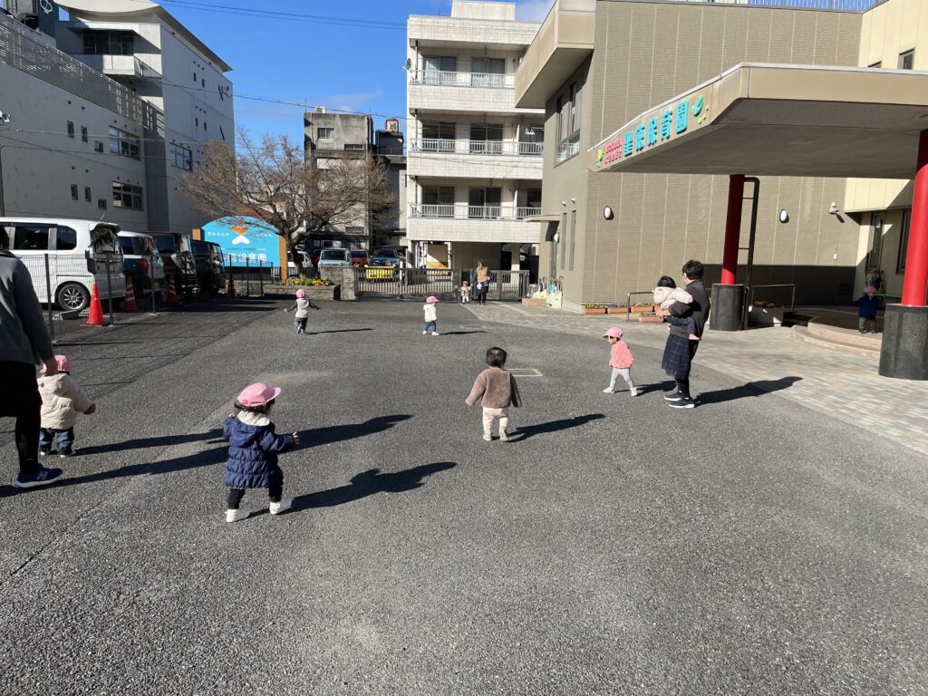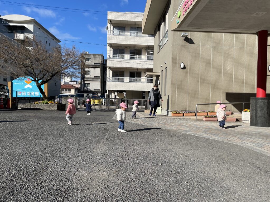 ひよこ組さんが、園舎前へ「おさんぽ」に出かけました。